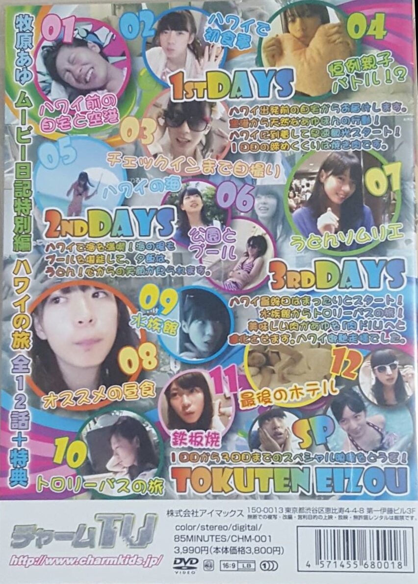 CHM-001 牧原あゆ ムービー日記特別編 ハワイの旅 X Facebook はてブ LINE コピー 2013.06.152025.10.26 牧原親子、アメリカへ渡航。 あの牧原親子、アメリカへ渡航。大人気あゆ旅シリーズ、今度はハワイへ向かいます!サポート無しの親子旅、波乱の予感がプンプンです。 タイトル牧原あゆ ムービー日記特別編 ハワイの旅出演者牧原あゆメーカーアイマックスレーベル– – – –シリーズ– – – –品番CHM-001発売日2013/06/15 🛒商品ページ 取扱なし
